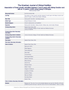 Title: | Association of linear growth velocities between 0 and 6 years with kidney function and size at 10 years: a birth cohort study in Ethiopia |