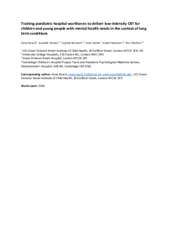 Roach_Training paediatric hospital workforces to deliver low-intensity CBT for children and young people with mental health needs in the context of long term conditions.pdf Download (158kB) | Preview |