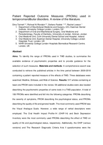 Leeson_Patient Reported Outcome Measures (PROMs) used in temporomandibular disorders. A review of the literature._.pdf Download (484kB) | Preview |