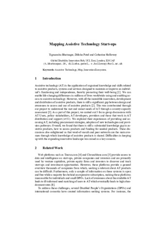 | Keywords: | Assistive Technology, Innovation, Startups, Mapping |