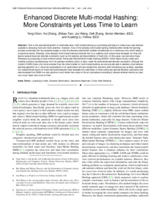 Title: | Enhanced Discrete Multi-modal Hashing: More Constraints yet Less Time to Learn (Extended Abstract) |