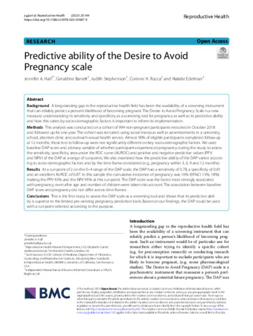 Title: | Predictive ability of the Desire to Avoid Pregnancy scale |
