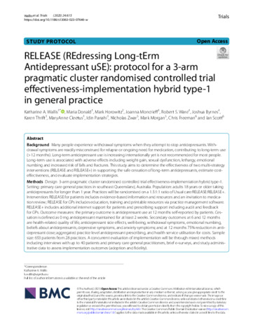 | Title: | RELEASE (REdressing Long-tErm Antidepressant uSE): protocol for a 3-arm pragmatic cluster randomised controlled trial effectiveness-implementation hybrid type-1 in general practice |