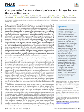 | Title: | Changes in the functional diversity of modern bird species over the last million years |