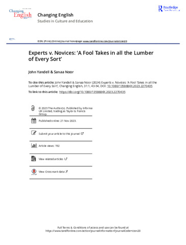 Title: | Experts v. Novices: ‘A Fool Takes in all the Lumber of Every Sort’ |