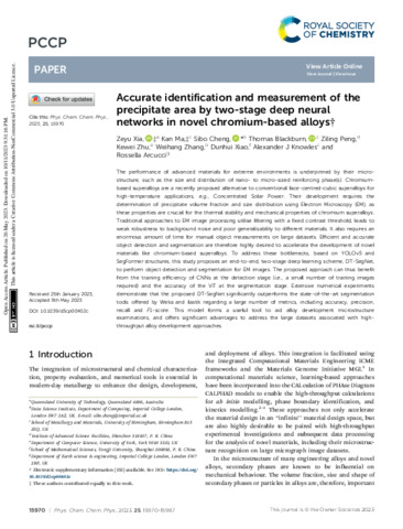 Title: | Accurate identification and measurement of the precipitate area by two-stage deep neural networks in novel chromium-based alloys |