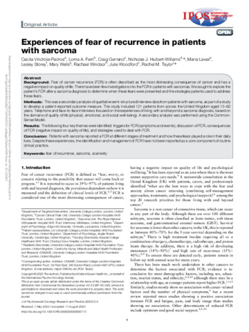 | Title: | Experiences of fear of recurrence in patients with sarcoma |