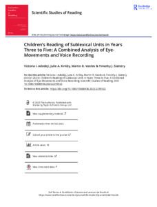 Children s Reading of Sublexical Units in Years Three to Five A Combined Analysis of Eye-Movements and Voice Recording.pdf - Published Version Download (2MB) | Preview |