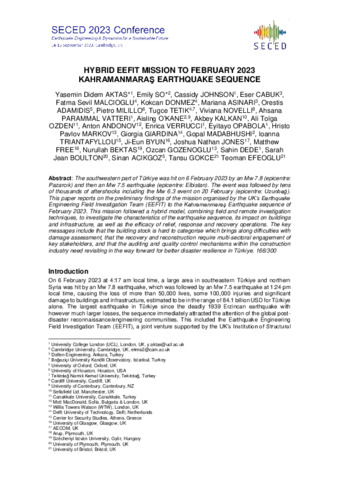 Title: | Hybrid EEFIT mission to february 2023 Kahramanmaraş earthquake sequence |