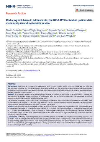 Additional information: | © 2024 Cottrell et al. This work was produced by Cottrell et al. under the terms of a commissioning contract issued by the Secretary of State for Health and Social Care. This is an Open Access publication distributed under the terms of the Creative Commons Attribution CC BY 4.0 licence (https:// creativecommons.org/licenses/by/4.0/). |