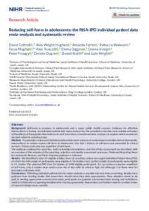 Reducing Self-harm in Adolescents: the RISA-IPD individual patient data meta-analysis and systematic review.