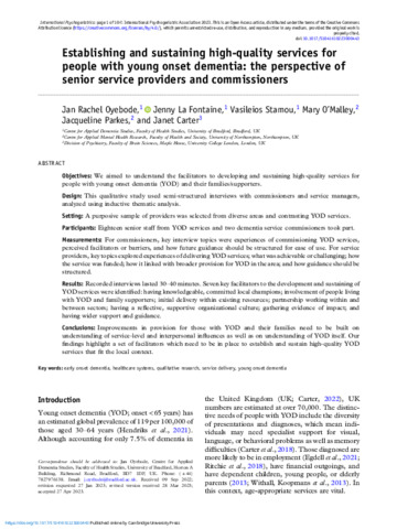Title: | Establishing and sustaining high-quality services for people with young onset dementia: The perspective of senior service providers and commissioners |