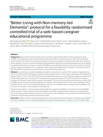 Title: | "Better Living with Non-memory-led Dementia": protocol for a feasibility randomised controlled trial of a web-based caregiver educational programme |