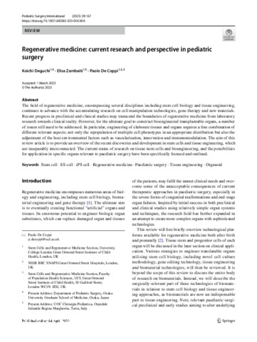 Title: | Regenerative medicine: current research and perspective in pediatric surgery |