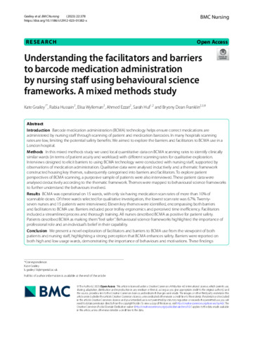 Title: | Understanding the facilitators and barriers to barcode medication administration by nursing staff using behavioural science frameworks. A mixed methods study |