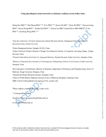 Using Physiological System Networks to Elaborate Resilience Across Frailty States.