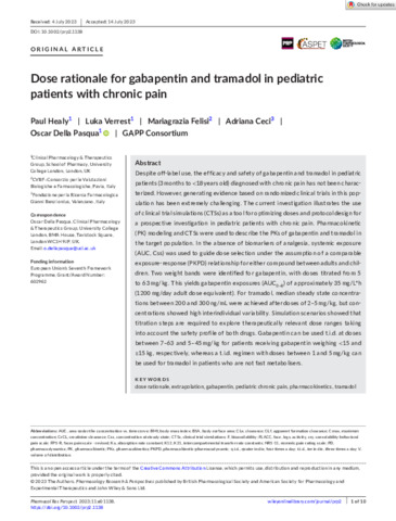 Title: | Dose rationale for gabapentin and tramadol in pediatric patients with chronic pain |