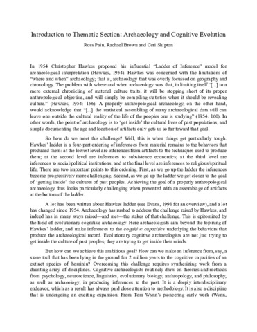 Archaeology and Cognitive Evolution: Introduction to the Thematic Section.