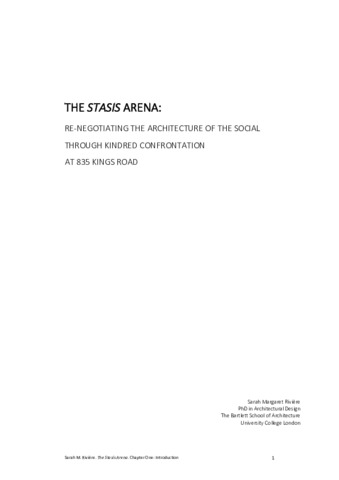 Title: | THE STASIS ARENA: Re-negotiating the architecture of the social through kindred confrontation at 835 Kings Road |