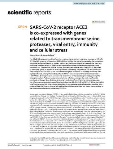 Title: | SARS-CoV-2 receptor ACE2 is co-expressed with genes related to transmembrane serine proteases, viral entry, immunity and cellular stress |