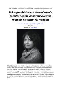 Title: | Taking an historical view of men’s mental health: an interview with medical historian Ali Haggett |