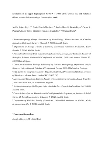 Title: | Estimation of the upper diaphragm in KNM-WT 15000 (Homo erectus s.l.) and Kebara 2 (Homo neanderthalensis) using a Homo sapiens model |