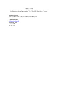 | Title: | Mobilisation without opportunity: The UK’s 2020 Black Lives Matter protests |