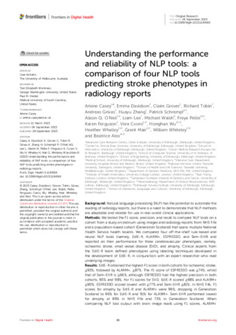 Title: | Understanding the performance and reliability of NLP tools: a comparison of four NLP tools predicting stroke phenotypes in radiology reports |