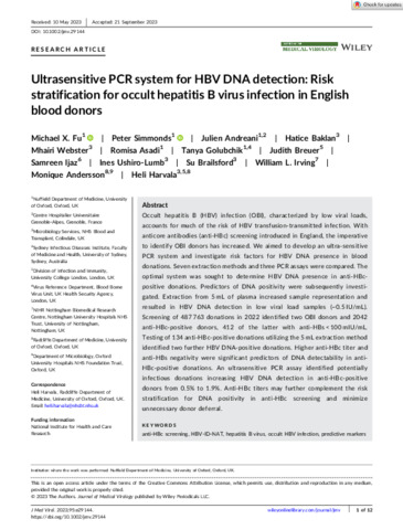 Title: | Ultrasensitive PCR system for HBV DNA detection: Risk stratification for occult hepatitis B virus infection in English blood donors |