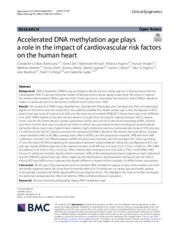 | Title: | Accelerated DNA methylation age plays a role in the impact of cardiovascular risk factors on the human heart |