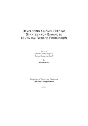 Title: | Developing a novel feeding strategy for enhanced lentiviral vector production |
