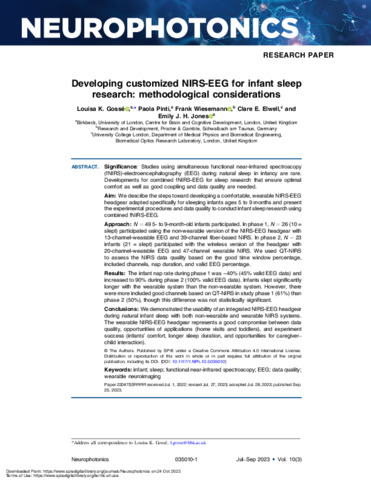 | Title: | Developing customized NIRS-EEG for infant sleep research: methodological considerations |