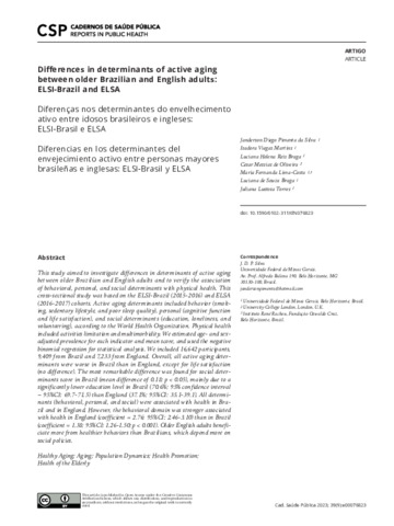 Differences in determinants of active aging between older Brazilian and English adults: ELSI-Brazil and ELSA.