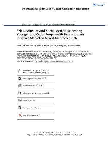 Title: | Self-Disclosure and Social Media Use among Younger and Older People with Dementia: An Internet-Mediated Mixed-Methods Study |