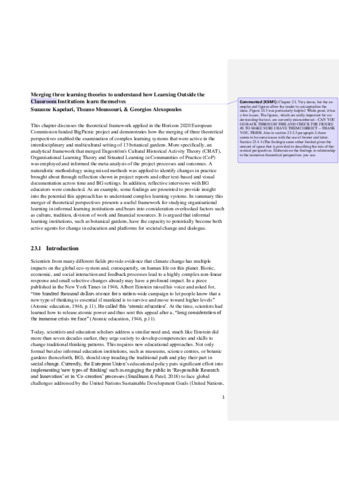 Title: | Merging Three Learning Theories to Understand How Learning Outside the Classroom Institutions Learn Themselves |