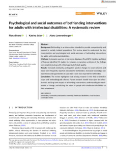 Title: | Psychological and social outcomes of befriending interventions for adults with intellectual disabilities: A systematic review |