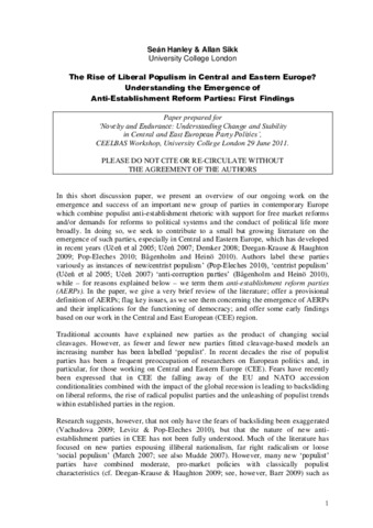 The Rise of Liberal Populism in Central and Eastern Europe? Understanding the Emergence of Anti-Establishment Reform Parties.