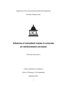| Title: | Influence of coincident cracks in concrete on reinforcement corrosion |