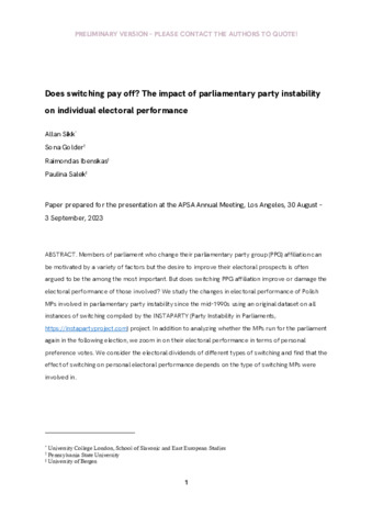 Title: | Does switching pay off? The impact of parliamentary party instability on individual electoral performance |
