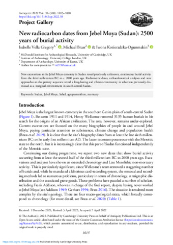 Title: | New radiocarbon dates from Jebel Moya (Sudan): 2500 years of burial activity |