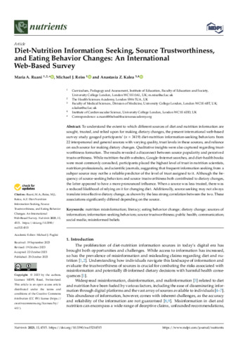 Title: | Diet-Nutrition Information Seeking, Source Trustworthiness, and Eating Behavior Changes: An International Web-Based Survey |