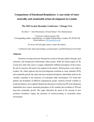 Title: | Comparisons of Emotional Boundaries: A case study of water neutrality and sustainable urban development in London |