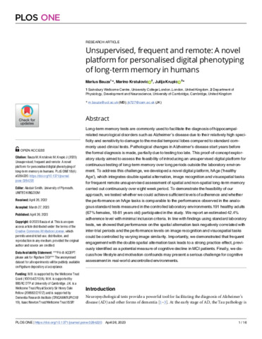 Title: | Unsupervised, frequent and remote: A novel platform for personalised digital phenotyping of long-term memory in humans |