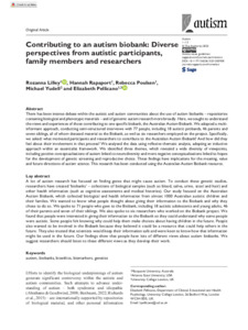 Title: | Contributing to an autism biobank: Diverse perspectives from autistic participants, family members and researchers |