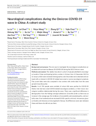 | Title: | Neurological complications during the Omicron COVID-19 wave in China: A cohort study |