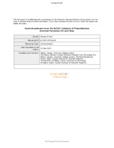Hydrotreatment over the Pt/Al2O3 Catalyst of Polyethylene-Derived Pyrolysis Oil and Wax.