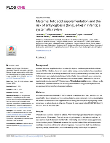 Maternal folic acid supplementation and the risk of ankyloglossia (tongue-tie) in infants; a systematic review.