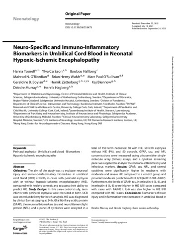 Neuro-Specific and Immuno-Inflammatory Biomarkers in Umbilical Cord Blood in Neonatal Hypoxic-Ischemic Encephalopathy.