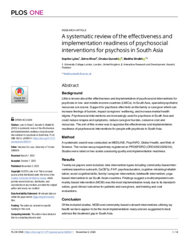 Title: | A systematic review of the effectiveness and implementation readiness of psychosocial interventions for psychosis in South Asia |