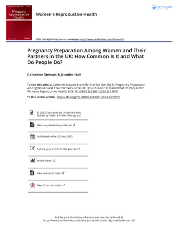 Title: | Pregnancy Preparation Among Women and Their Partners in the UK: How Common Is It and What Do People Do? |